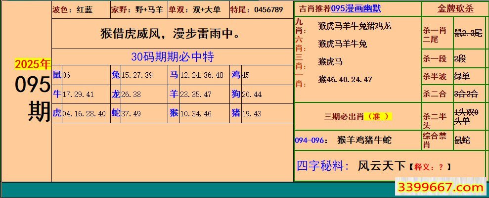 主题 :095期:小鱼儿30码期期中+幽默猜测