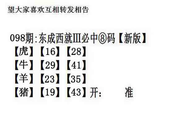 | 主题 :098期:另版【东成西就四肖8码】 |