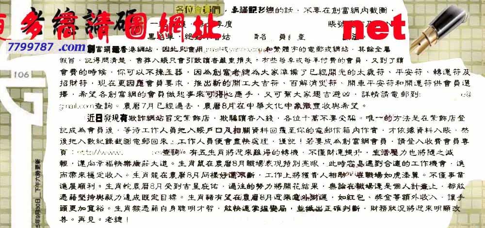 | 主题 :106期:老总论码/萧公子/林大师/五行夺码 |