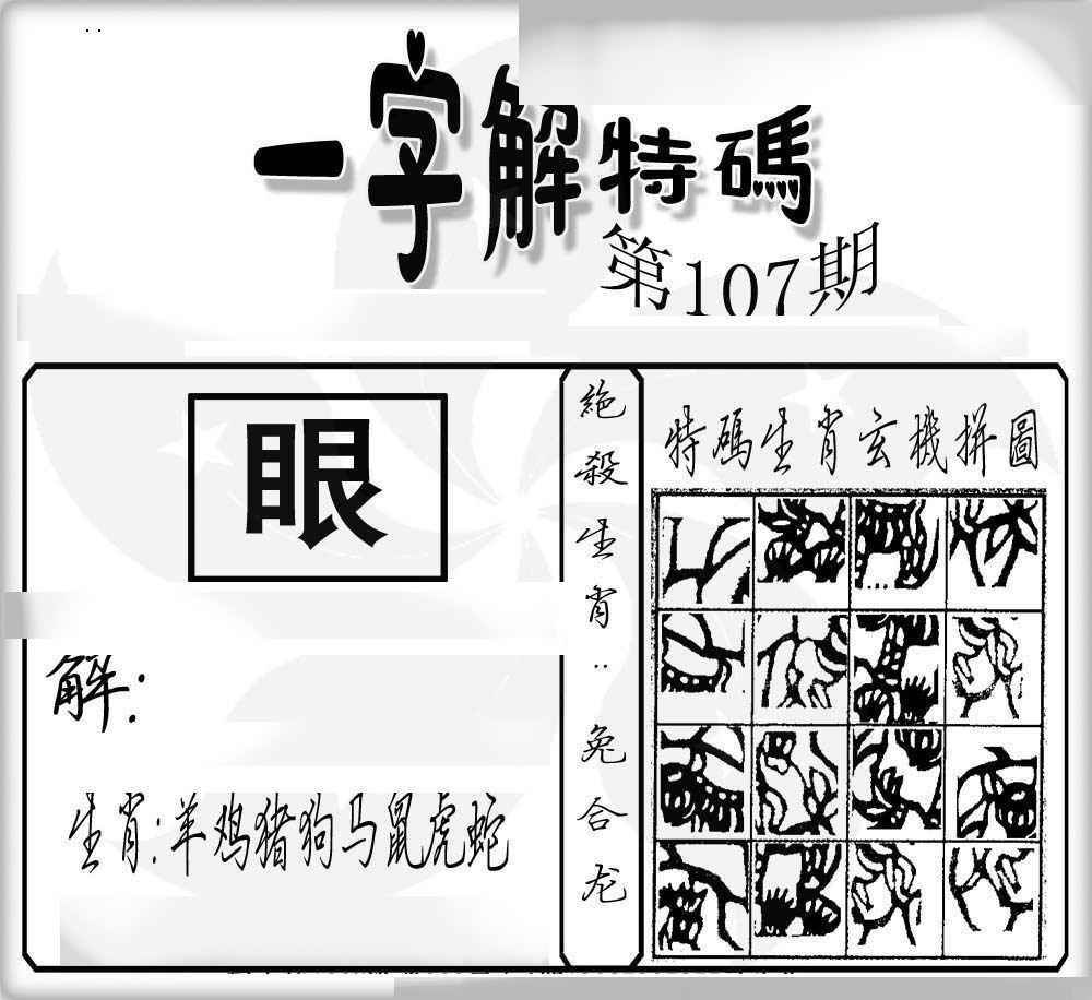 | 主题 :107期:一字解特码 |