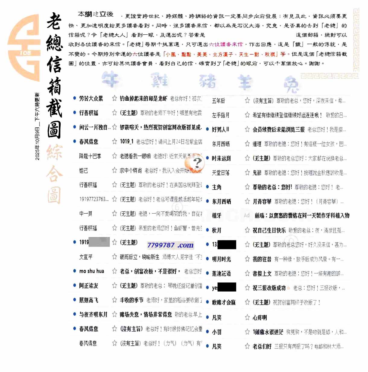 主题 :108期:六合皇金句/老总论码/萧公子/林大师/五行夺码/老总信箱截