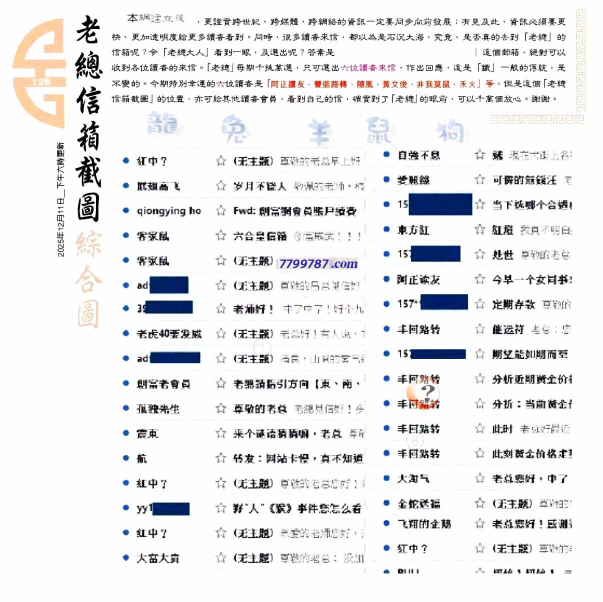 主题 :128期:六合皇金句/老总论码/萧公子/林大师/五行夺码/老总信箱截