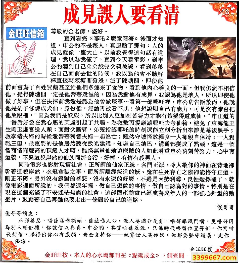 132期:金旺旺信箱彩民推荐→→《成見誤人要看清》