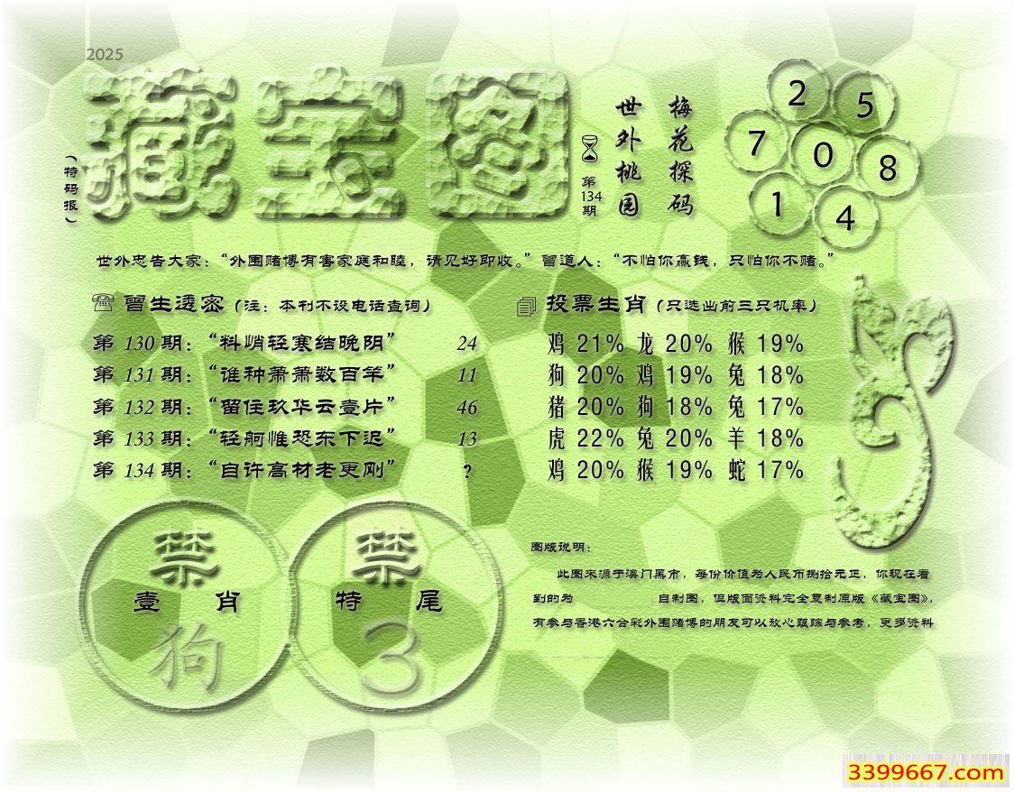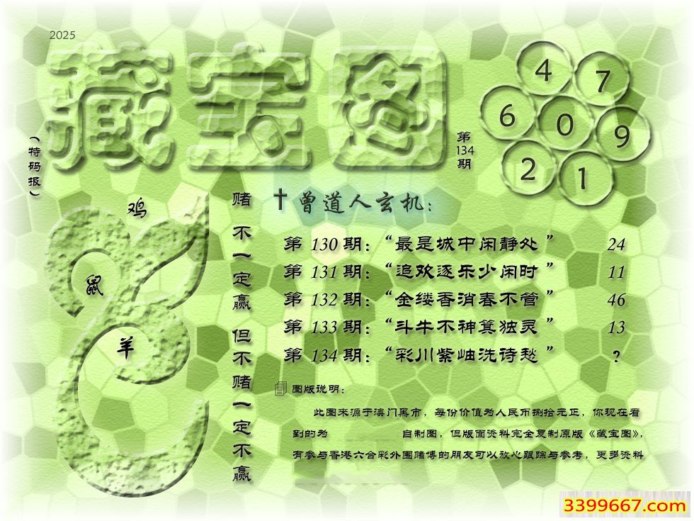 134期藏寶圖 新:彩川紫岫洗诗愁 老:自许高材老更刚 禁:狗 禁:3尾