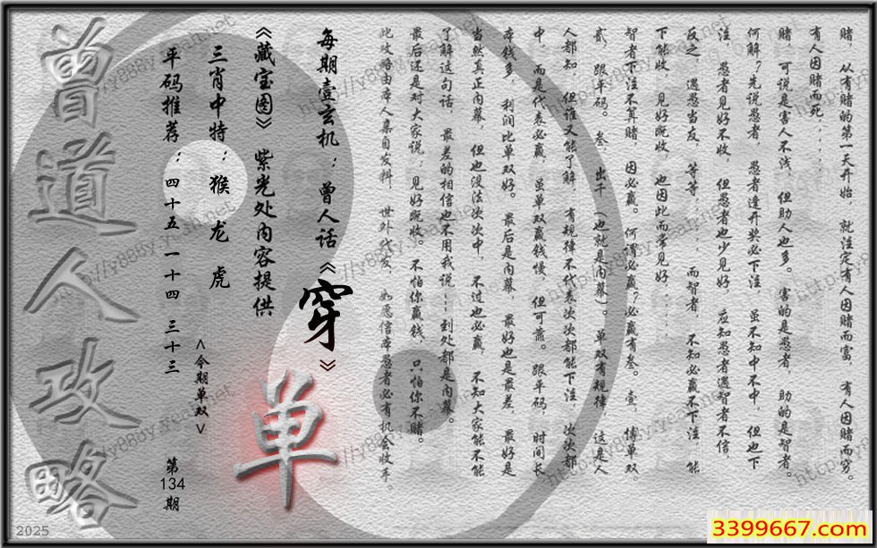 主题 :134期藏寶圖 新:彩川紫岫洗诗愁 老:自许高材老更刚 禁:狗 禁:3尾