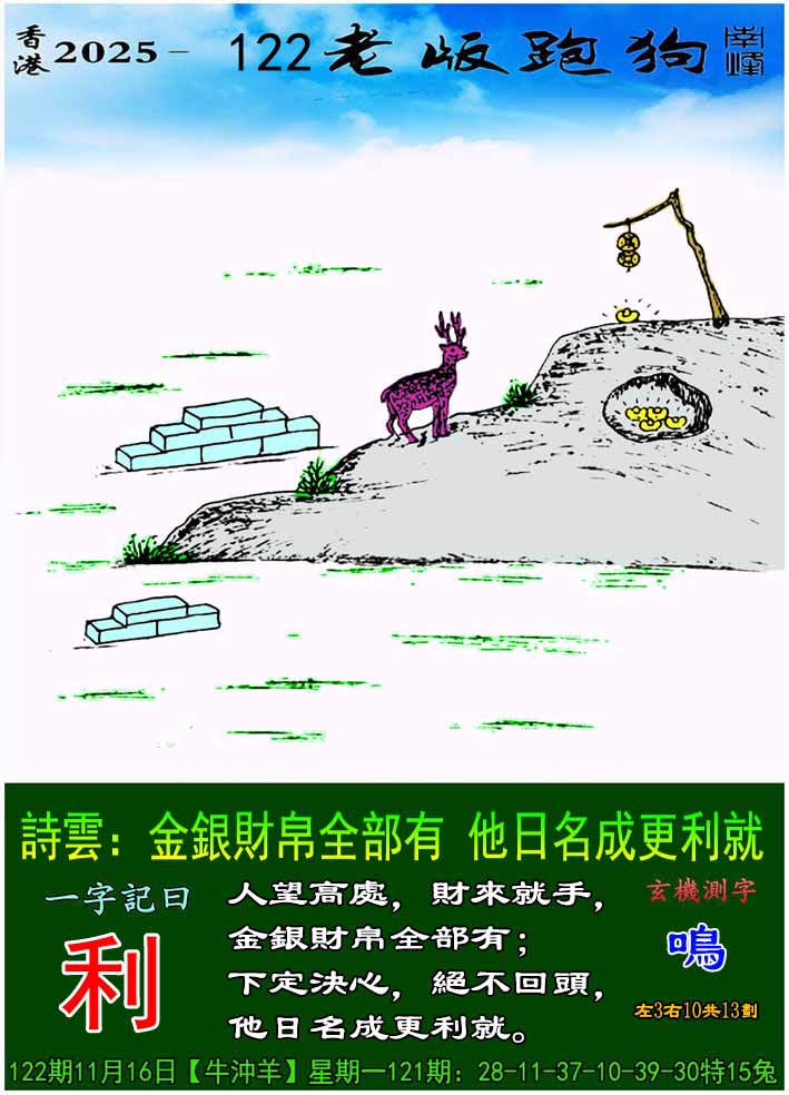 主题 :122期老版跑狗一字記之曰:【利】 玄機測字:《鳴》