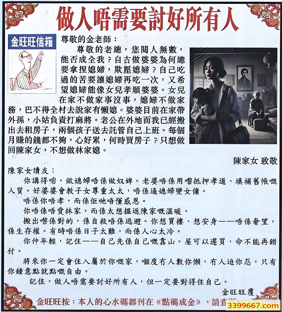 126期:金旺旺信箱彩民推荐→→《做人唔需要討好所有人》